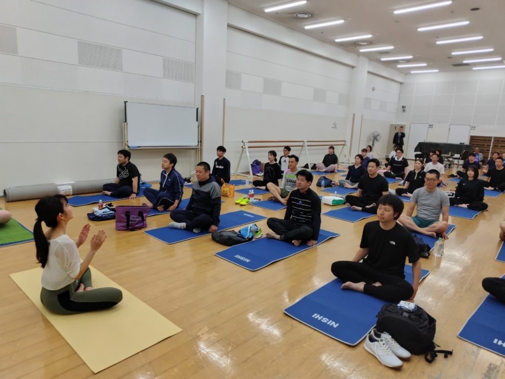 当日は多くの社員の方々にご参加いただき、呼吸を整えながら行うストレッチや、肩・背中・体幹まわりを中心としたコンディショニングエクササイズを実施しました。